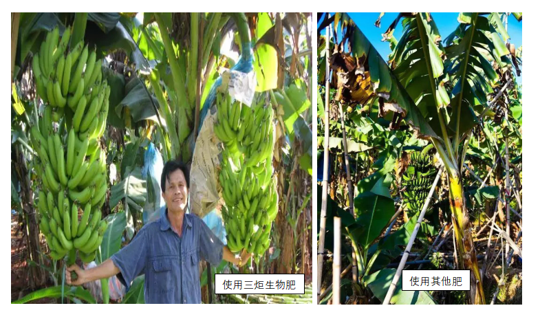 連續十年使用“三炬”生物肥。這里是香蕉黃葉病的重災區,老邱蕉園周圍的很多蕉地都有黃葉病,但他的蕉園目前為止還沒發現一株病株。而且用了“三炬”生物肥的蕉,好保葉,到砍蕉時還有健康的葉片7-8張以上;香蕉品質好,賣價比他人的高2-3毛錢一市斤。
