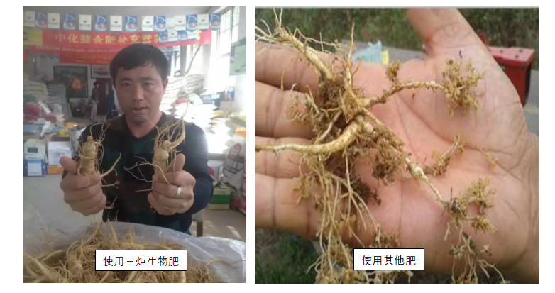 種植戶:項總 地區:山東 種植作物:西洋參 種植面積:300畝 主要面臨的問題:爛參、殘參多 使用情況:連續使用三炬生物肥3年 使用心得: 1、增產:20畝三年直播的平均畝產達1400斤,90畝“1倒2”平均畝產也達1200斤,旁人都以為是“2倒2”的參;